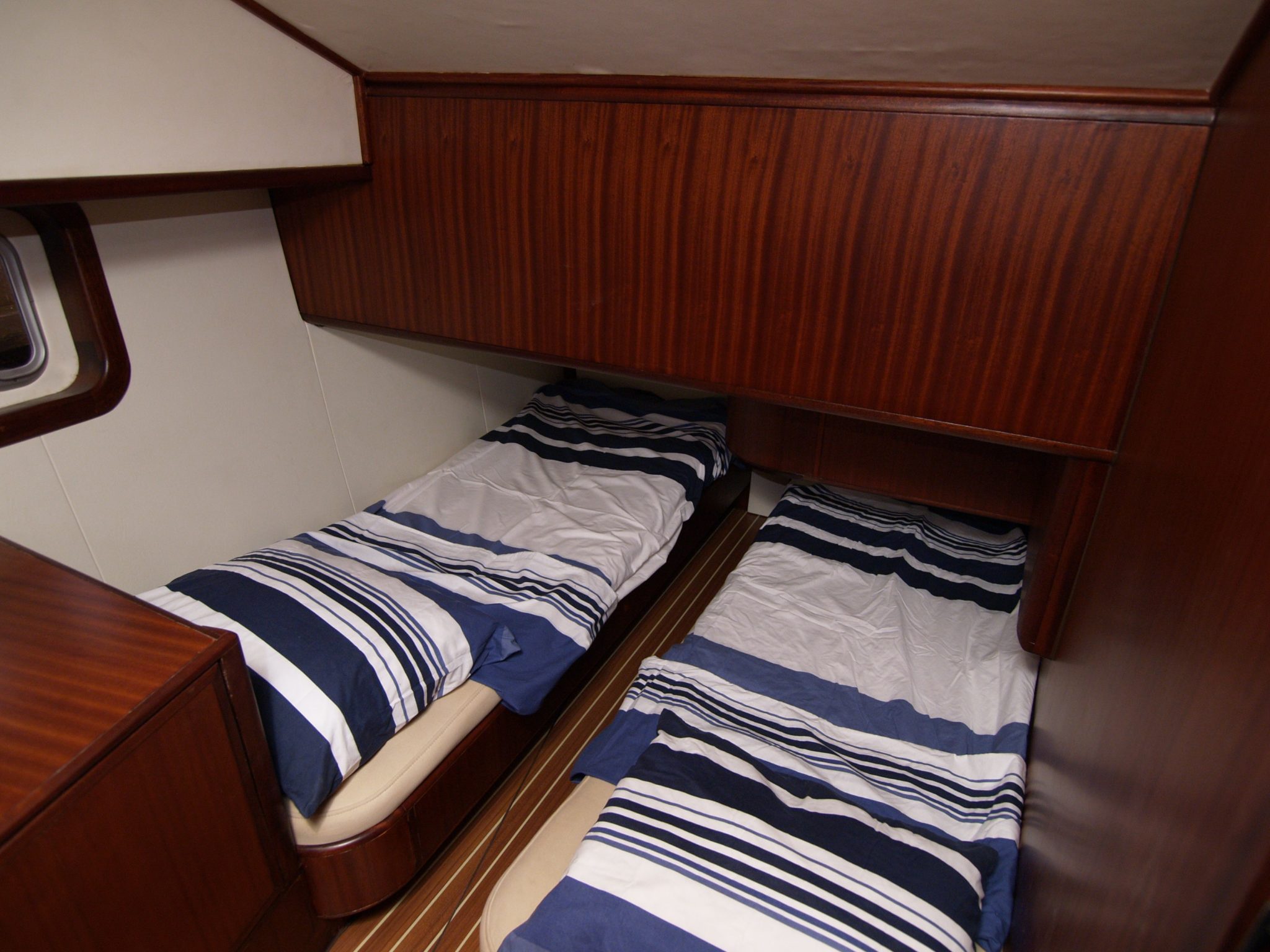 Openslaande deuren geven u vanuit de salon toegang tot de heerlijke achterkuip met vaste banken en middels de kuipdeur tot het riante zwemplateau met vaste zwemtrap. De schitterende kuiptent/cabriokap zorgt voor eventuele beschutting.